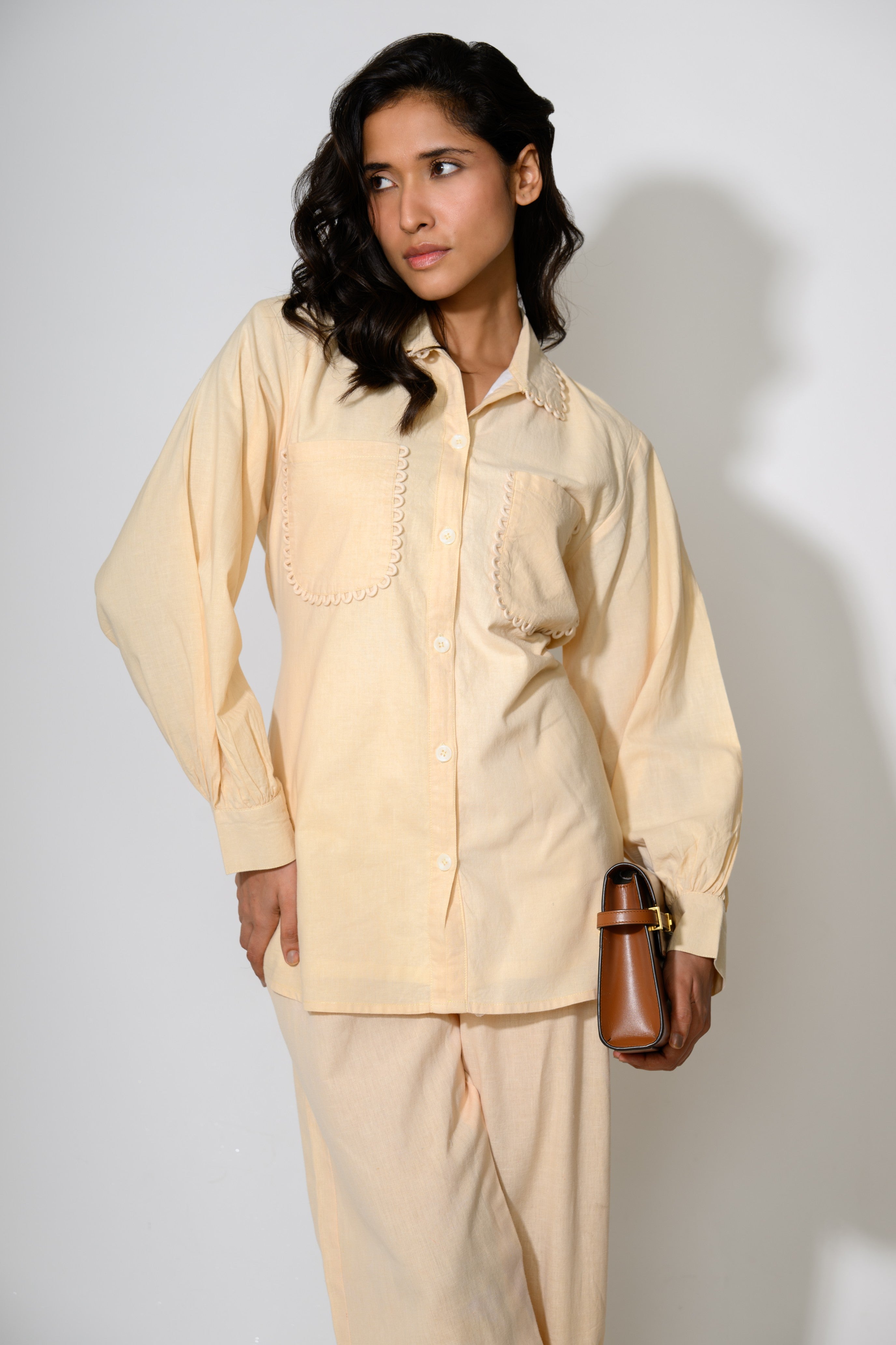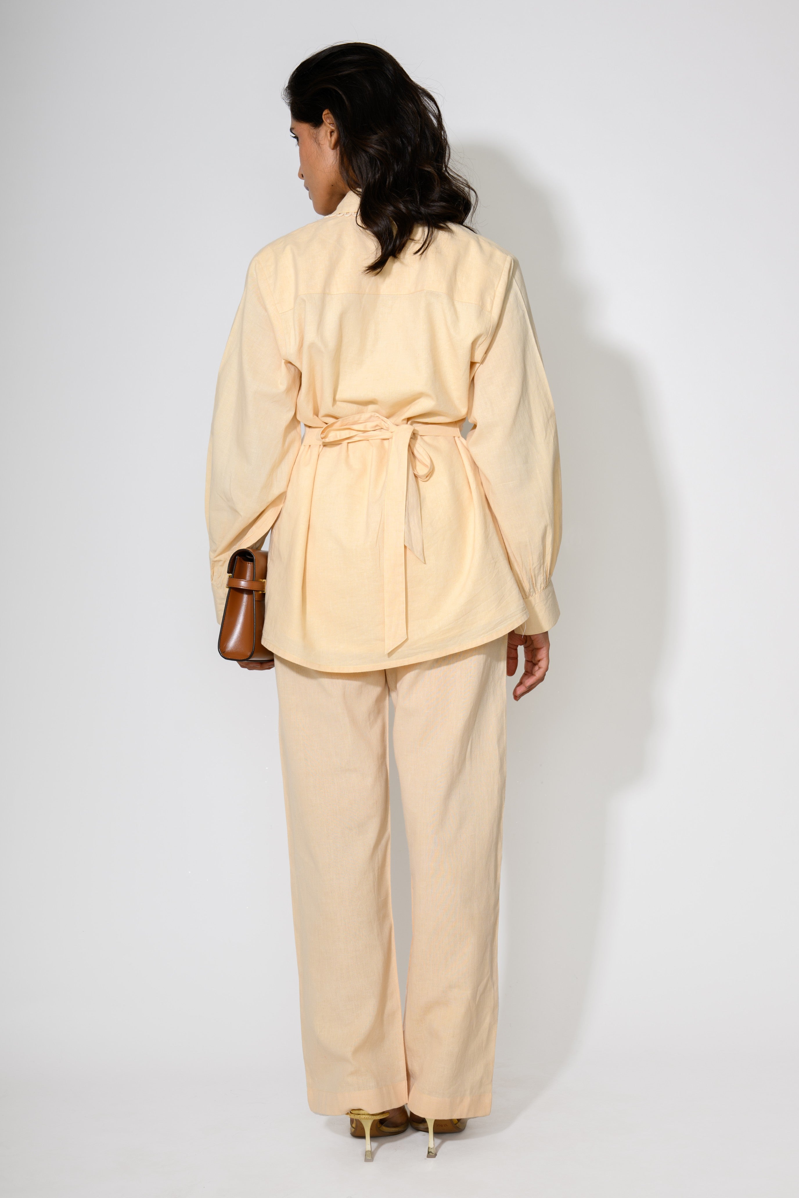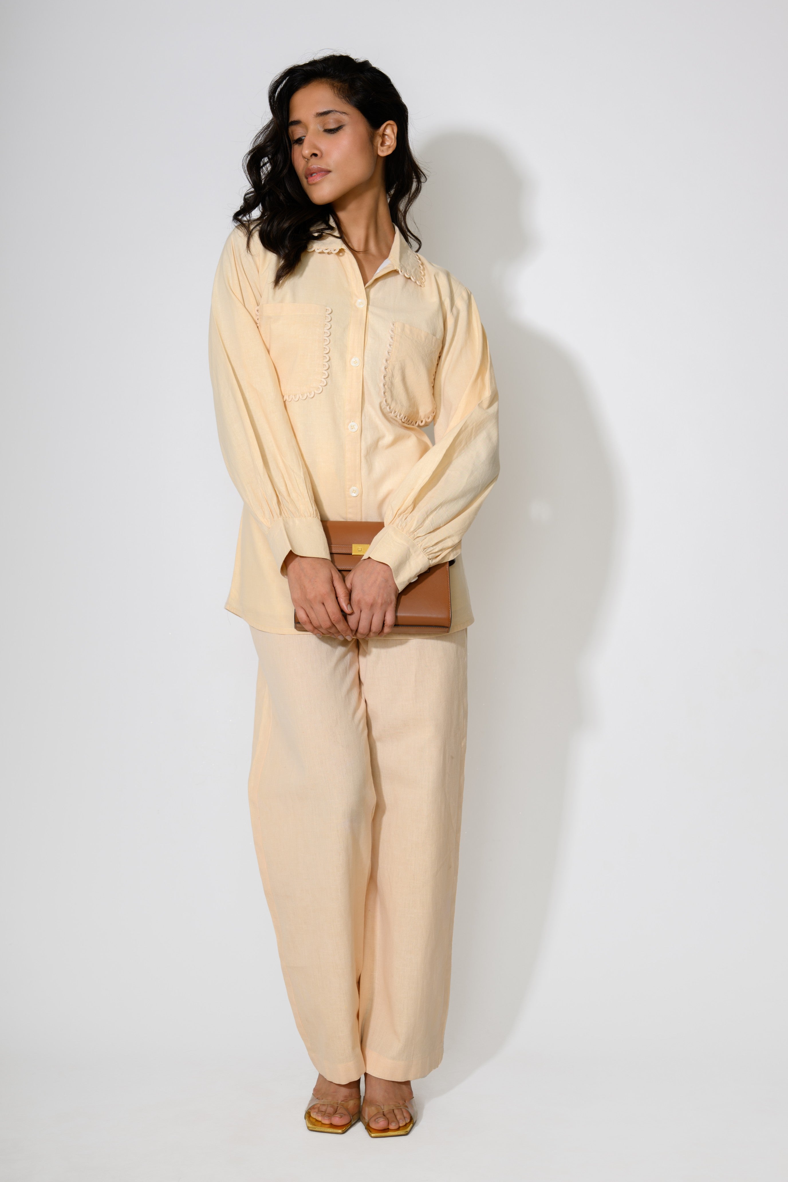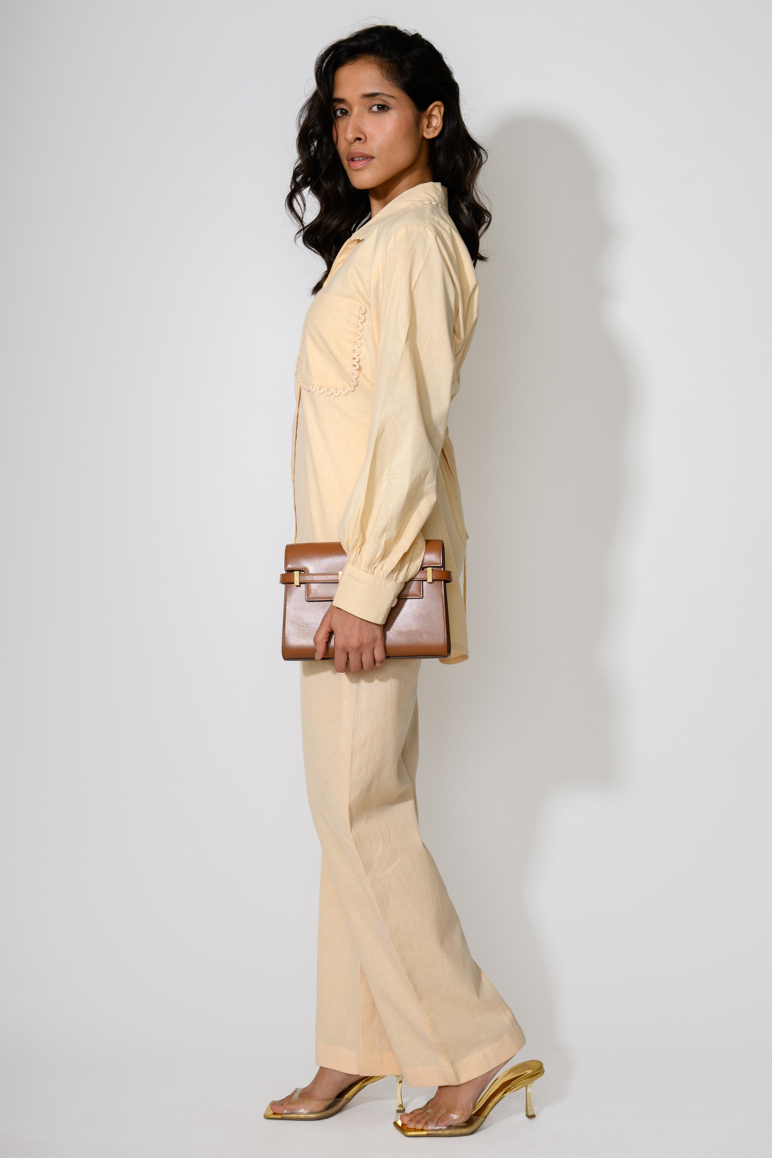 Bright, Breezy & Bold! This yellow co-ord set radiates sunshine with its relaxed silhouette and soft fabric. Perfect for warm days, it balances effortless charm and casual sophistication. The tie up top and wide-legged pants offer a modern, coordinated vibe that transitions smoothly from daywear to a sundown stroll.